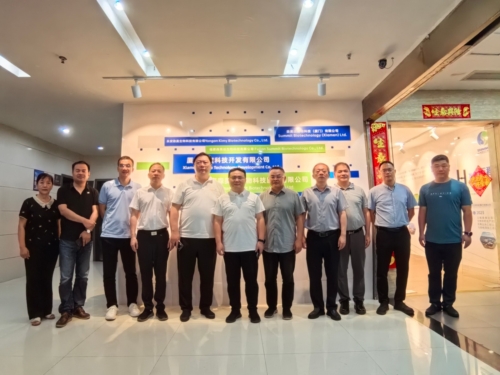 On September 8th, the 25th China International Fair for Investment and Trade (CIFIT) was held at the Xiamen International Conference and Exhibition Center. Yong'an City organized a delegation to Xiamen for investment promotion and inspection activities. During this period, Fu Tianbao, Secretary of the CPC Yong'an Municipal Committee, visited and inspected Summit Biotechnology (Xiamen) Ltd., a subsidiary of Summit Group (hereinafter referred to as "Summit Xiamen"). Lin Hai, Deputy Director of Yong'an Municipal People's Congress Standing Committee, Gong Zuqing, Vice Mayor of Yong'an Municipal Government, Zhang Jinming, Vice Chairman of Yong'an Municipal Committee of the Chinese People's Political Consultative Conference (CPPCC), and other officials attended the event together.