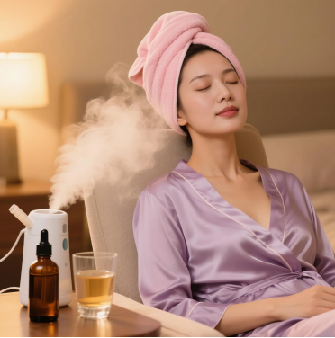 将3-4滴茶树精油滴入美容蒸汽机或热水中,近距离吸入可畅通呼吸。