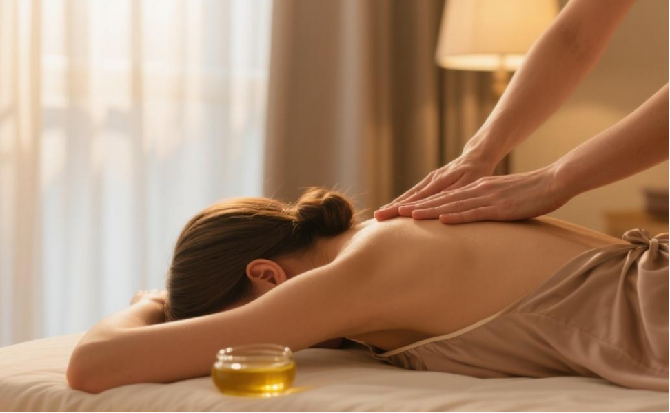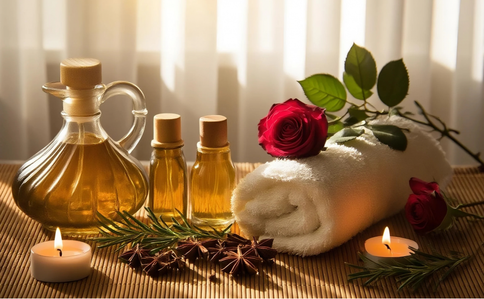 将精油滴入沐浴或泡脚的温热水浸泡放松。